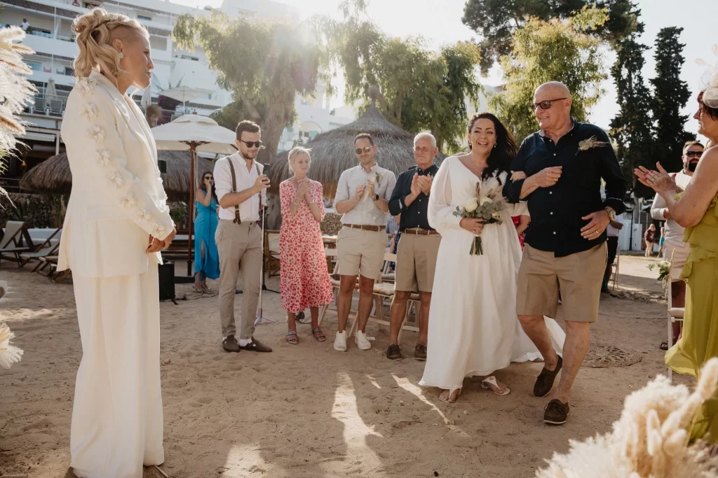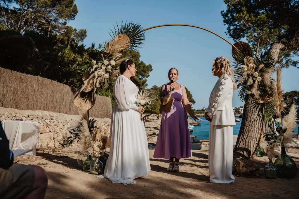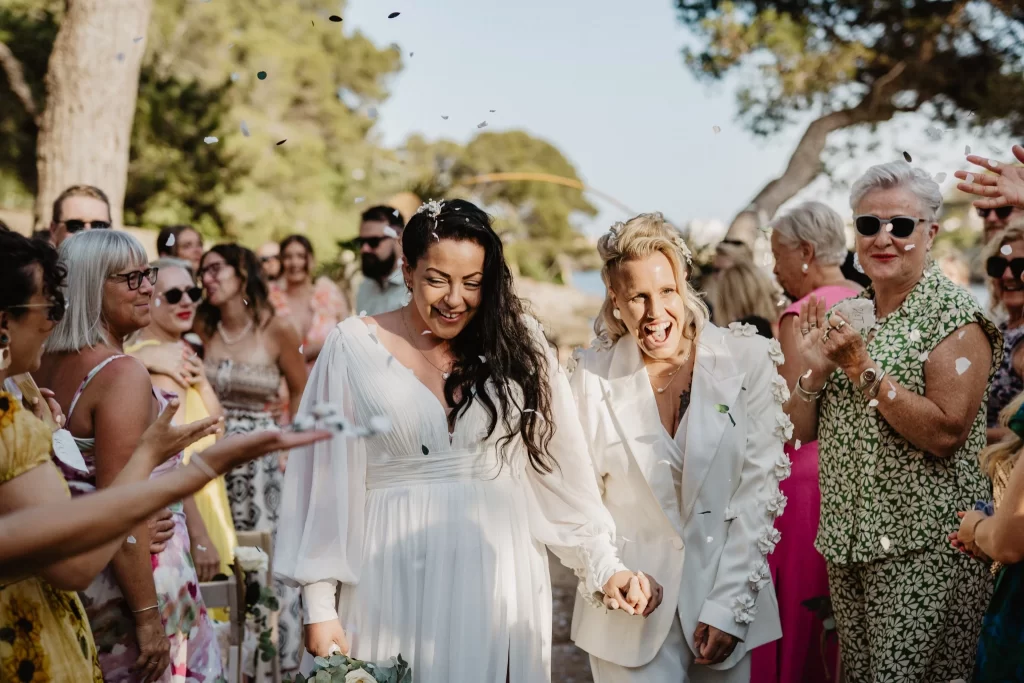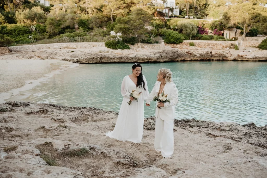 Our New Year started with a message that made us smile from the very first line: “Hey Magda… HAPPY NEW YEAR 🥳🥂🍾”. It was the warmest nudge to sit down, take a deep breath and revisit a day that felt effortless, sunlit and unmistakably theirs. This is the story of Tess and her partner – two women who chose to get married in their favourite place in the world, on an island that has become a constant in their travels and a quiet anchor in their hearts. It is a tale about simple beauty, long-distance beginnings, an extraordinary proposal involving a glacier lagoon and four curious seals, and a wedding day woven from music, poetry and sand. Welcome to their Mallorca.