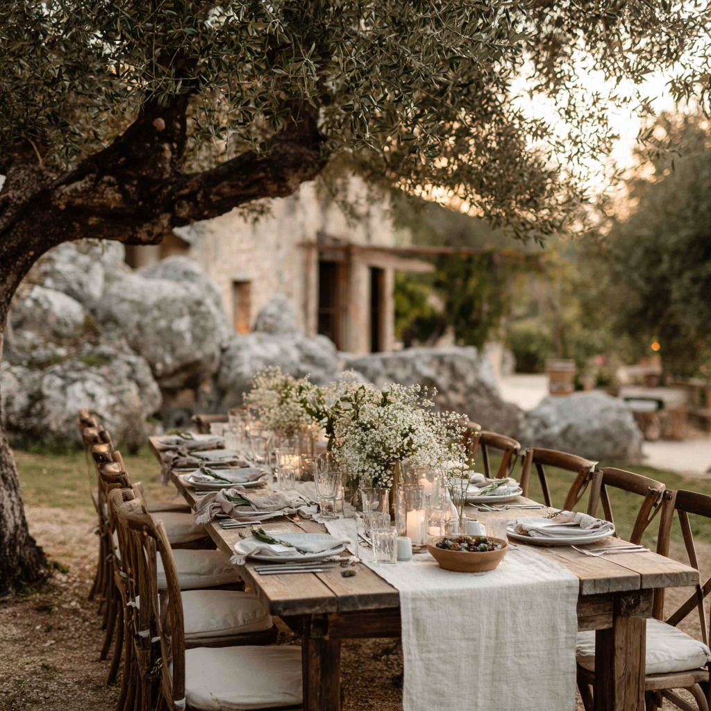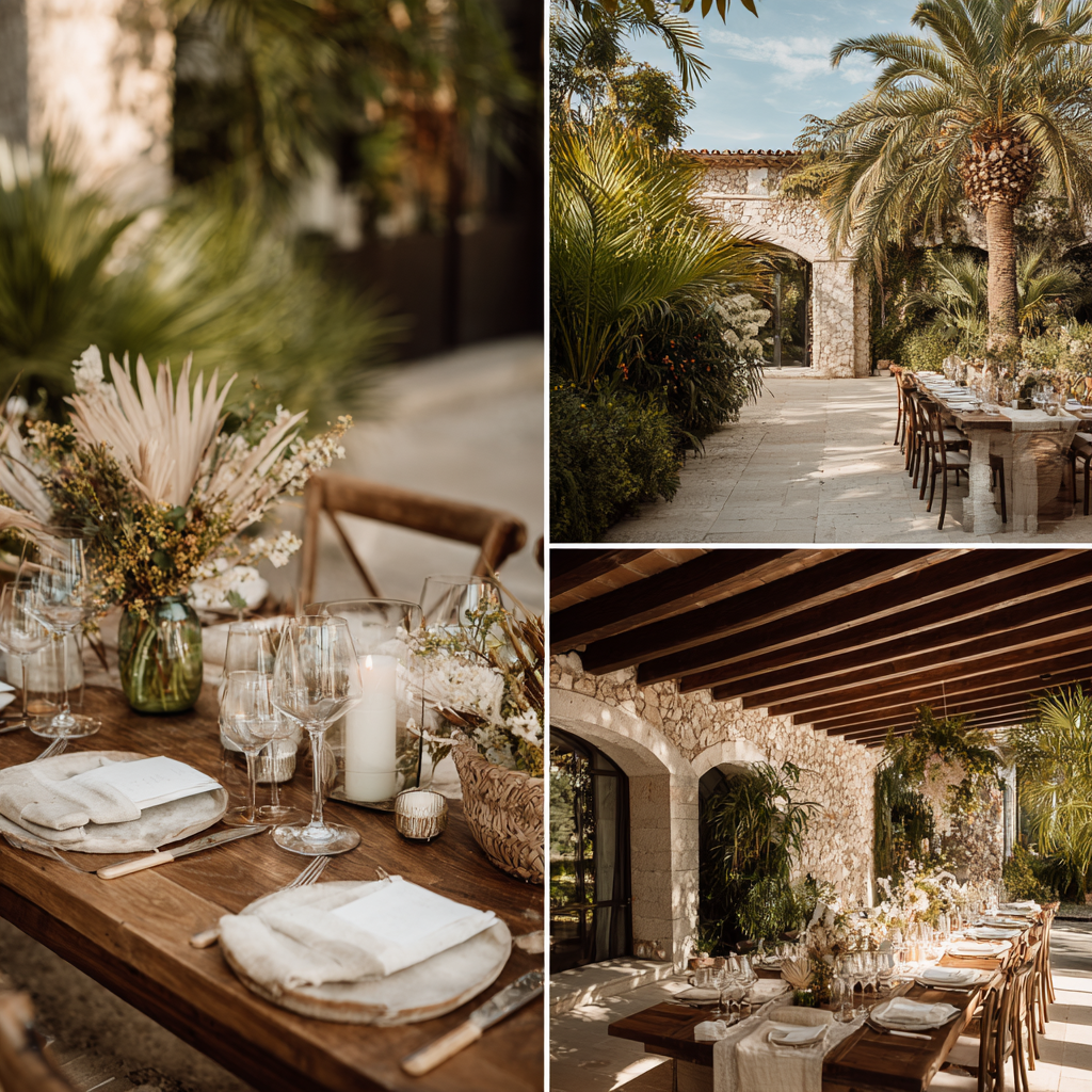 Decor becomes more sculptural and artistic. Fewer flowers, but higher quality—arrangements that feel deliberate rather than excessive. Mallorca itself provides the stage. The design does not compete with the setting; it complements it. Stone walls, ancient olive trees, the Mediterranean light at golden hour—these elements become part of the aesthetic, not obstacles to overcome.