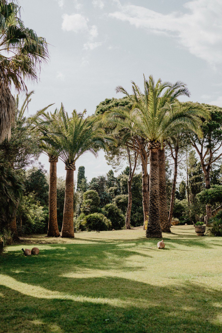 Welcome to a lush paradise where Mediterranean nature and refined elegance meet. This exquisite estate, framed by rows of palm trees and surrounded by vineyards and lavender fields, offers the perfect backdrop for a sophisticated garden wedding. With an expansive green lawn for your ceremony, beautifully styled reception areas, and a historic manor as the heart of the venue, every detail speaks of timeless charm. Guests dine under the stars, between towering trees and romantic lights, creating an atmosphere that is both grand and intimate. From the dramatic entrance lined with palms to the soft glow of dusk celebrations, this is a setting where unforgettable memories are made.