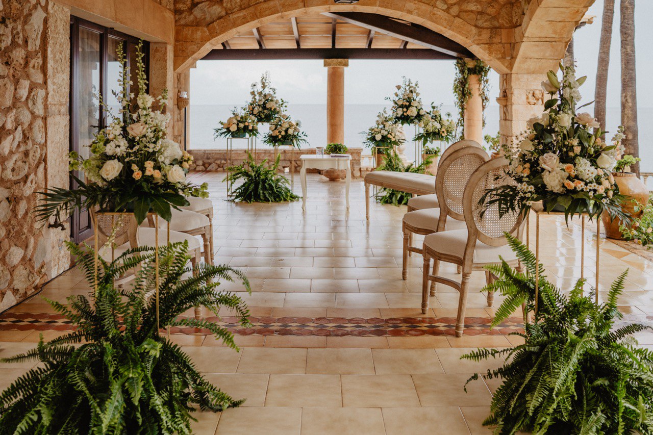 Celebrate your love surrounded by sweeping sea views and the golden glow of the Mallorcan sun. This stunning hilltop venue combines rustic elegance with modern comfort — from romantic outdoor ceremonies under a floral arch to stylish al fresco dining under soft sails. Set against a backdrop of natural stone, lush greens, and the shimmering sea, every detail — from the white-draped tables to the intimate lighting — creates an atmosphere of relaxed sophistication. Whether you’re planning a full wedding celebration or a chic reception at dusk, this setting transforms your special day into an unforgettable Mediterranean experience.
